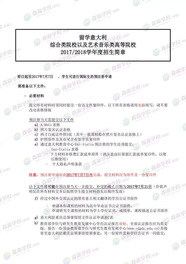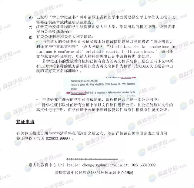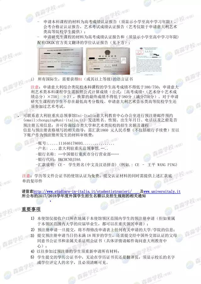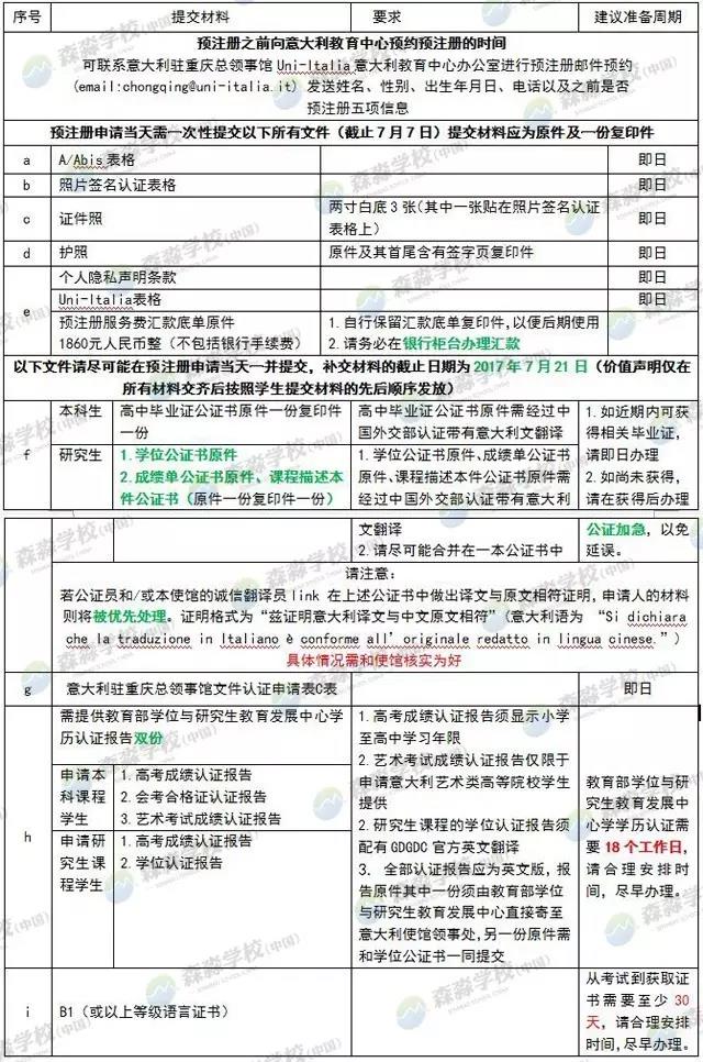 2017/2018意大利国际生重庆领区预注册指南:有高考成绩门槛,在渝大学应届生也可就地预注册