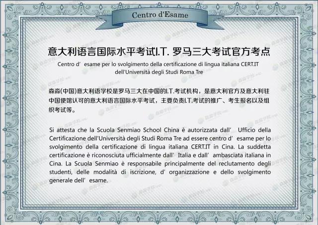 根据本指南规定,所有进行预注册的国际生需要至少获得B1语言证书。为了保证7月7日可以顺利提交预注册申请,作为罗马三大考试的官方考点,森淼学校特别与罗马第三大学合作,为广大学生举办两场语言考试。详情如下: