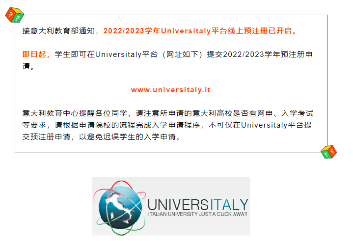 重要通知!即日起,Universitaly线上预注册正式开启!