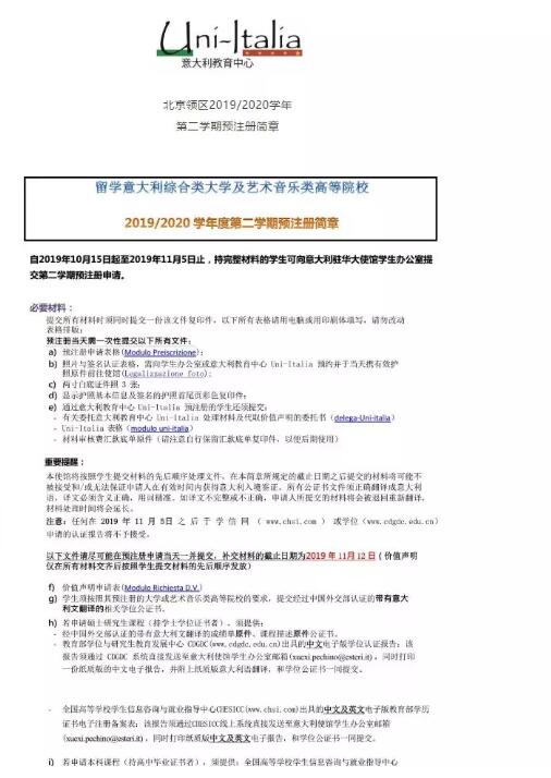 意大利教育中心公布了2019/2020学年第二期预注册信息,这里针对的2020年春季入学的学生,哪些学校在这个预注册范围内呢?