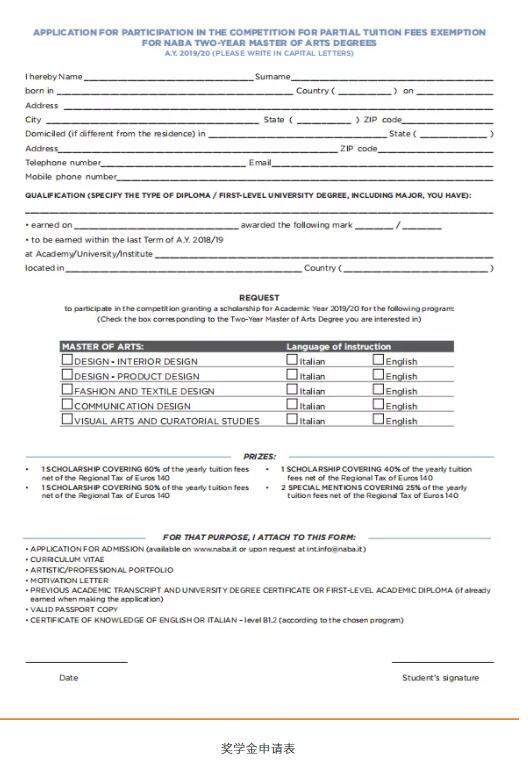1. 填写完整的课程申请表和奖学金申请表并签字