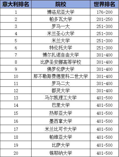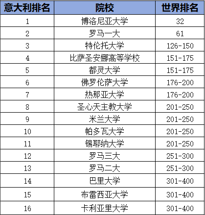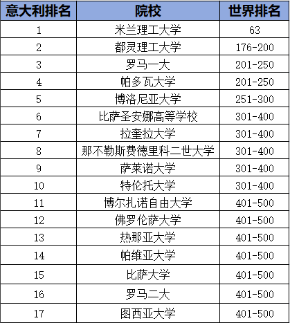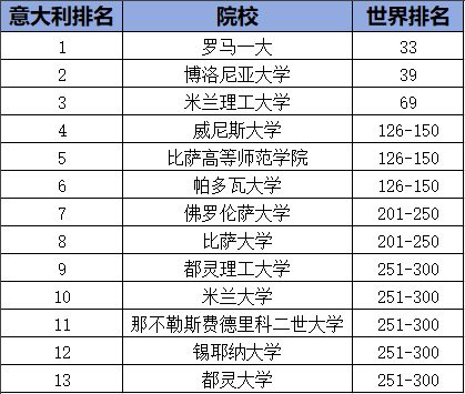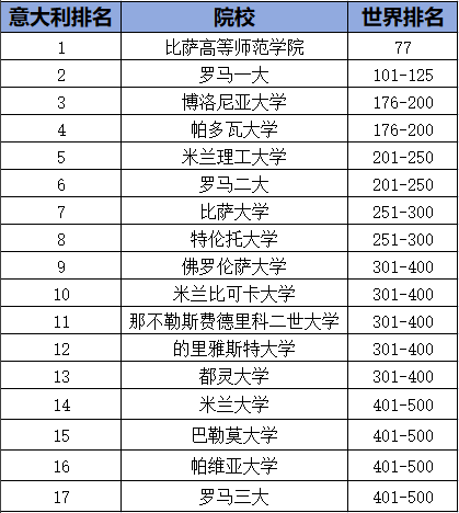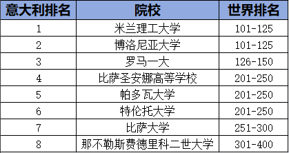 下面我们一起看看意大利的院校表现如何~