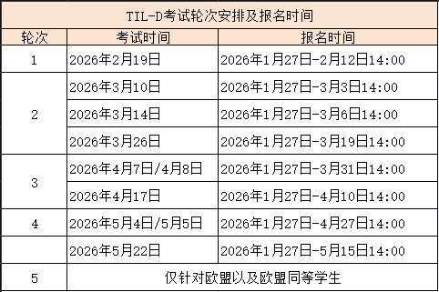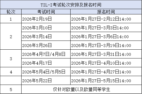 * 每人最多可参加TIL-I测试3次,且每场次只能参加一次; 重复参加考试的情况下,采用考生的最佳成绩作为最终成绩。